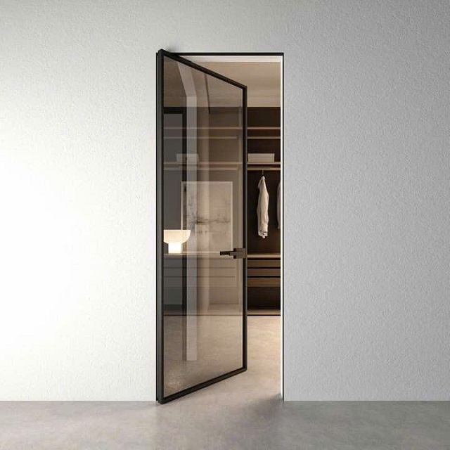 Đối với hệ mở quay, bản lệ thường là loại ẩn hoặc âm tường, được chế tạo từ inox cao cấp hoặc hợp kim kẽm. Với cơ chế hoạt động mượt mà, thiết kế của bản lề sẽ giúp cánh cửa có thể đóng/mở linh hoạt, không gây xô lệch hay tạo tiếng động lớn. Ngoài ra, vì được giấu kín, nên bản lề còn mang đến sự gọn gàng, không làm vỡ tính thẩm mỹ tổng thể của bộ cửa.